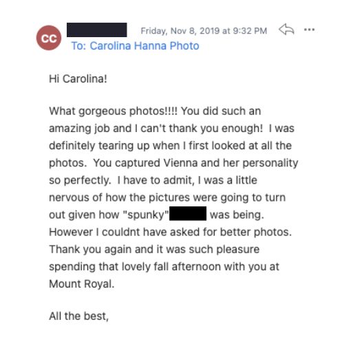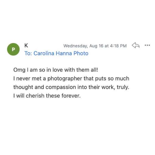 “Carolina has amazed us in her ability to capture the perfect moment. I love all of her work. But her candid shots are my favourite…I love that all we had to do was show up and she was able to do her magic. We continue to find any excuse to hire Carolina as we love her work so much!!
